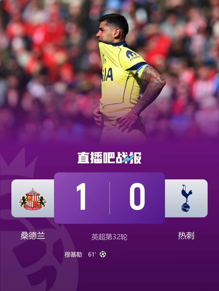 14轮不胜!热刺0-1桑德兰距保级区2分 穆基勒制胜罗梅罗伤退痛哭