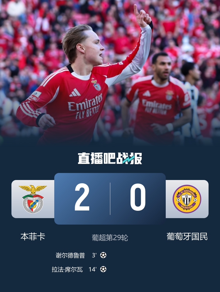 先赛距榜首4分!本菲卡2-0葡萄牙国民 谢尔德鲁普闪击+造点